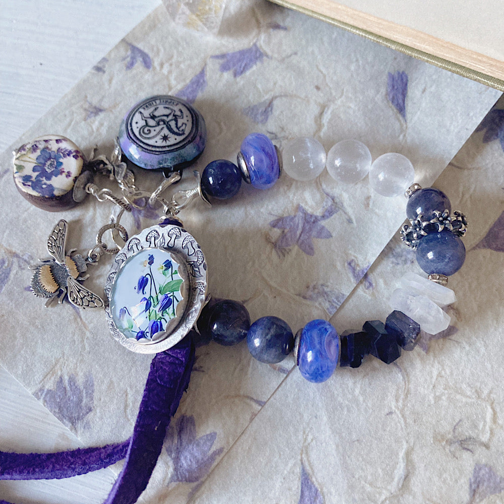 Reserved for a VIP: Women’s Spring Bluebells and Bees Garden Witch Talisman Tanzanite Button Clasp Bracelet